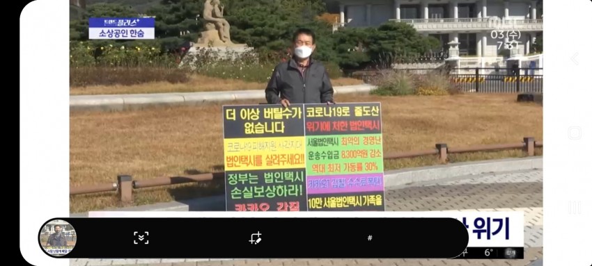 - 시위내용 : 법인택시의 어려움 호소와 손실보상·융자지원 지원 등